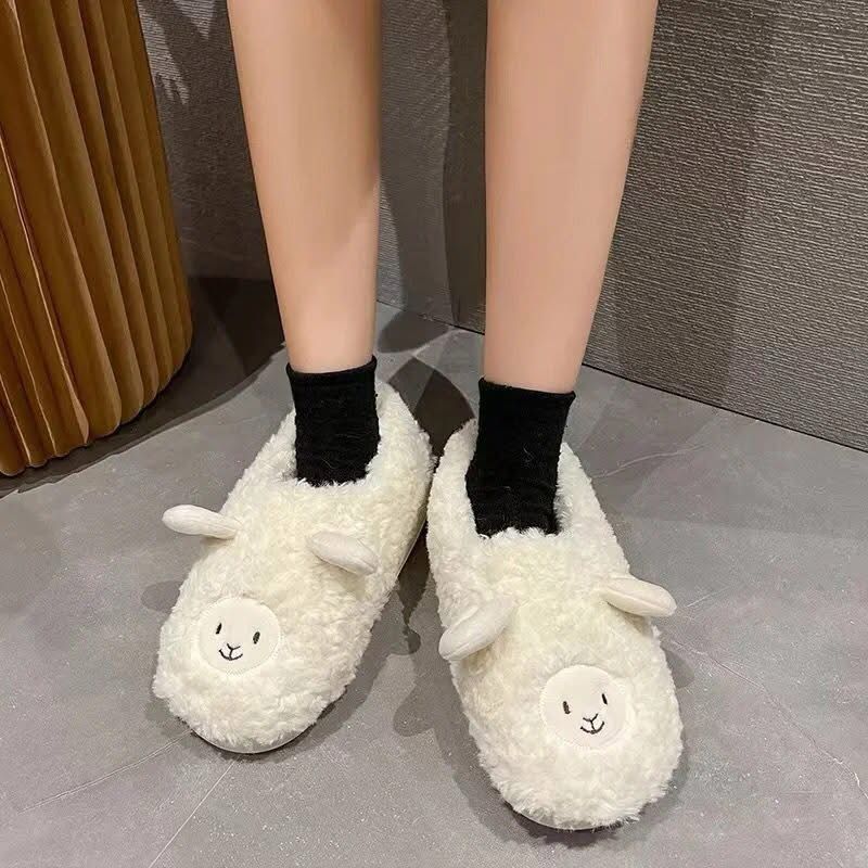 Estas pantuflas son adorables y cรณmodas. Estรกn hechas de una tela suave y esponjosa de felpa que proporciona calidez con cada paso. Tienen el rostro sonriente de una oveja en la parte superior, con orejas peludas y ojos amigables. La suela es resistente y la parte interior estรก acolchada para mayor comodidad. Son perfectas para relajarse en casa y ofrecen una sensaciรณn de lujo con cada uso